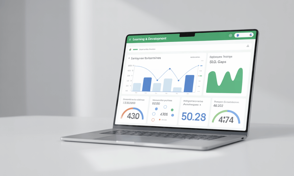 - Per bulan: jumlah pelatihan yang dilakukan, total jam pelatihan, pelatihan internal, dan eksternal.
